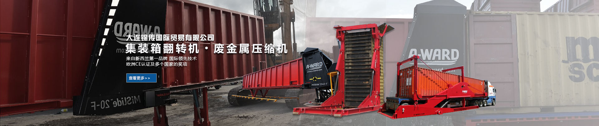 大連錦傳國際貿(mào)易有限公司于2013年11月與新西蘭A Ward公司達成戰(zhàn)略合作,成功代理集裝箱翻轉機、廢金屬壓縮機等產(chǎn)品在中國大陸的銷售、維護及保養(yǎng)業(yè)務。本公司重合同、守信用,保證產(chǎn)品質(zhì)量,以經(jīng)營多種特色的產(chǎn)品和薄利多銷的原則,贏得了廣大客戶的信任與厚愛。現(xiàn)長期出口產(chǎn)品至澳大利亞,巴西,德國,俄羅斯,哥倫比亞,美國,泰國,羅馬尼亞,新西蘭 ,意大利,越南,印度,印度尼西亞等國家。